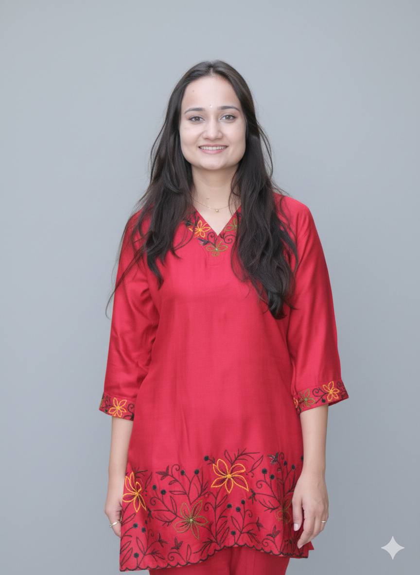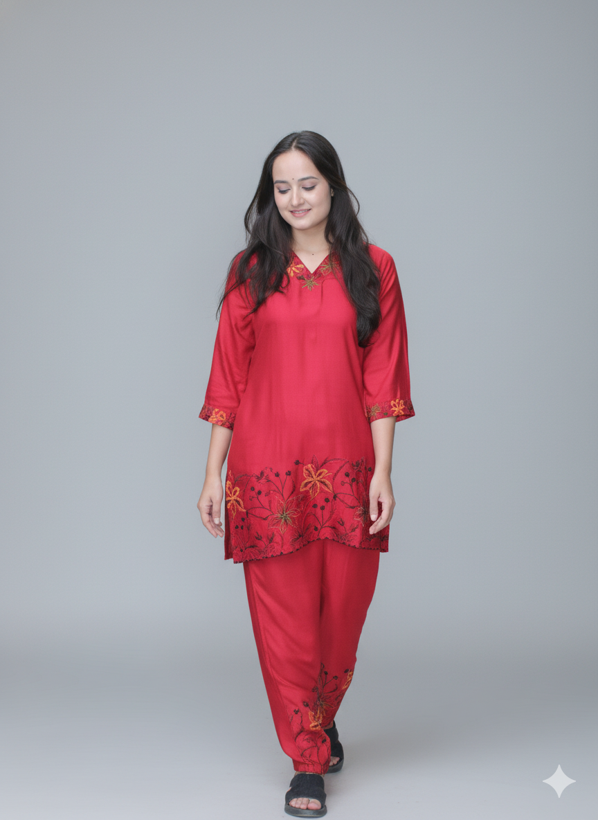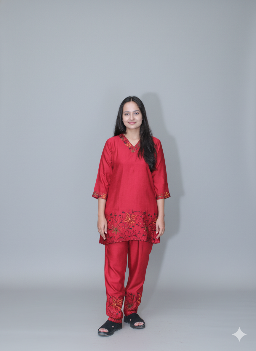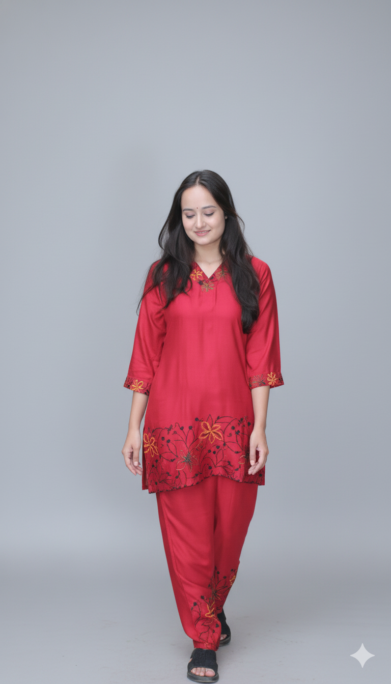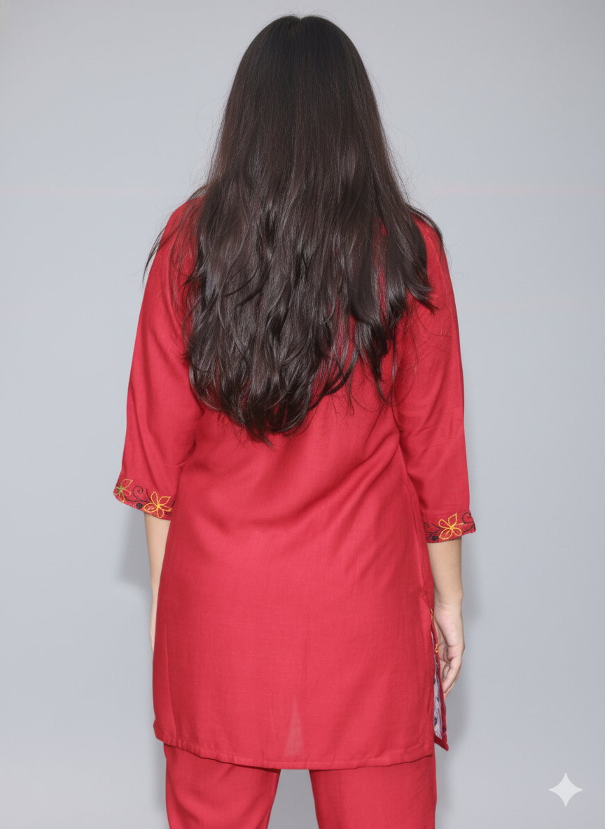 Women Red Embroidered Co-Ord Set