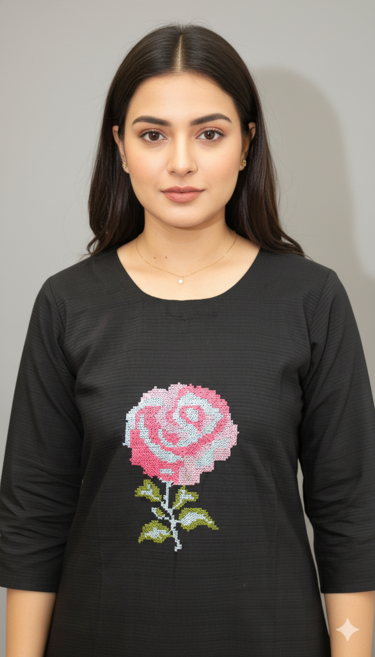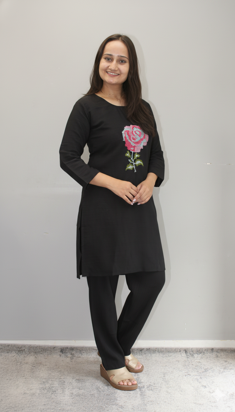 & Free ShippingWomen Rose Embroidered Black Co-ord Set